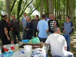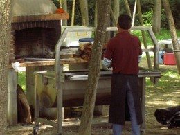 Bem cedo, um esforçado bácoro começou a dar voltas no espeto. Ao lado, havia bica aberta pelo que os condimentos para uma bela jornada estavam lançados.
